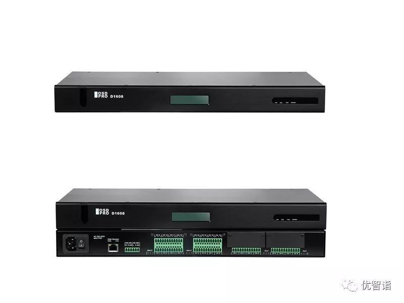 D1616数字音频矩阵处理器OSDPRO D系列数字音频矩阵处理器最大可以做到16进16出,采用了ADI SHARC第四代ADSP-21489浮点音频DSP芯片,提供最高性能400 MHz/2200 MFLOP处理器能力。超低底噪前置放大电路,低失真